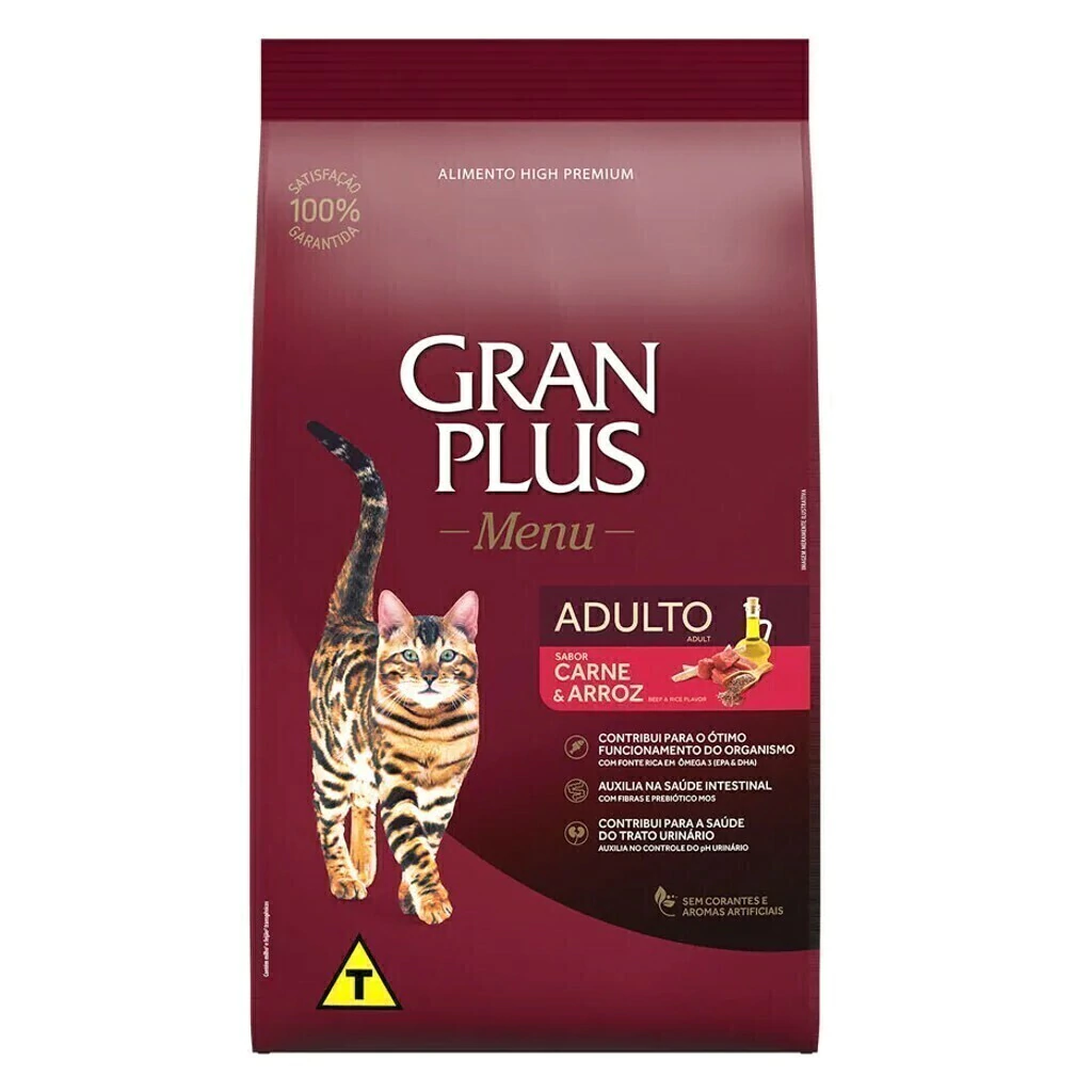 Ração GranPlus para Gatos Adultos - Sabor Carne e Arroz
