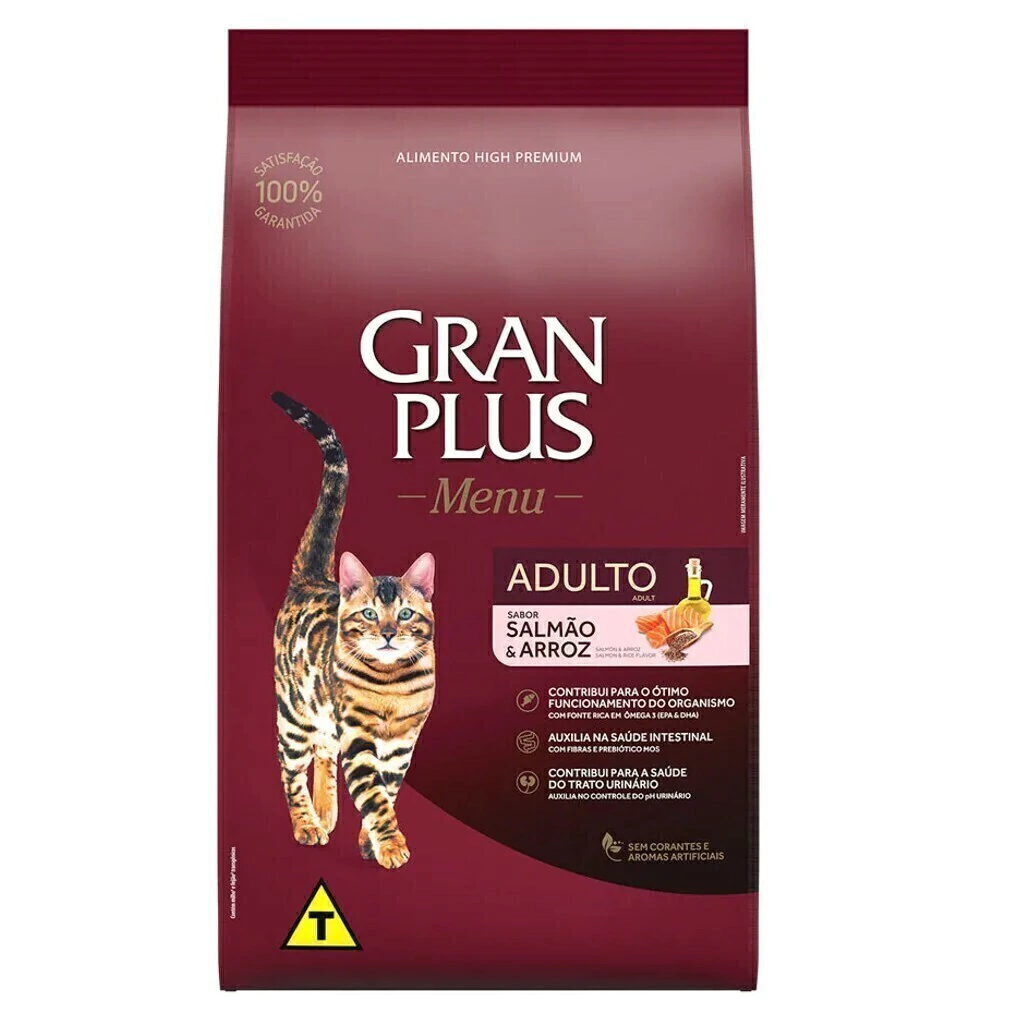 A GranPlus para Gatos Adultos - Sabor Salmão e Arroz é uma ração de alta qualidade, feita para proporcionar uma alimentação completa e balanceada para o seu gato. Com ingredientes nobres e uma formulação exclusiva, ela é ideal para manter a saúde do seu felino, com benefícios para o trato urinário e um ótimo aproveitamento de nutrientes.