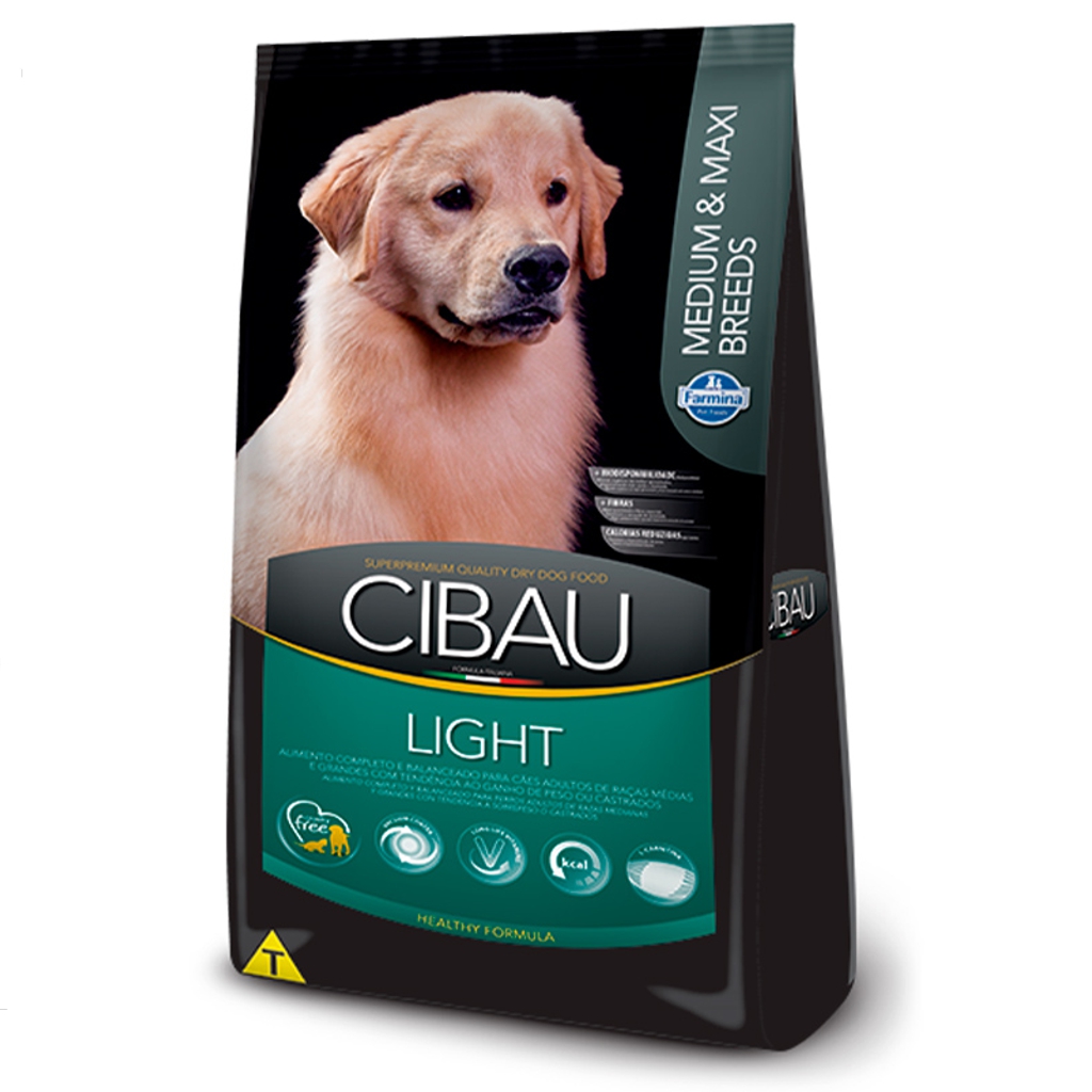 A Ração Cibau Medium & Maxi Light 12kg é um alimento Super Premium desenvolvido pela Farmina para cães adultos de porte médio e grande com tendência ao ganho de peso ou obesidade.